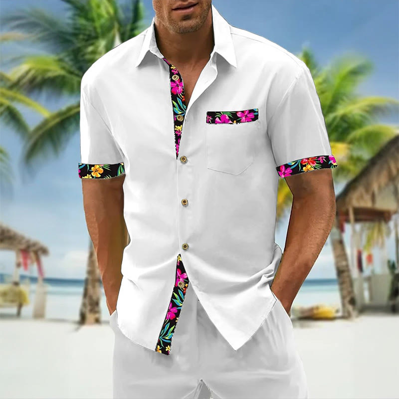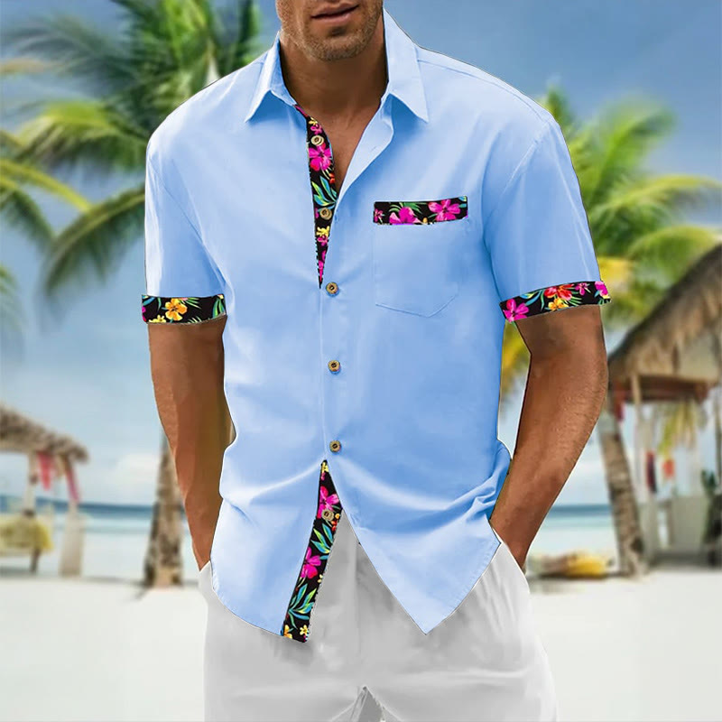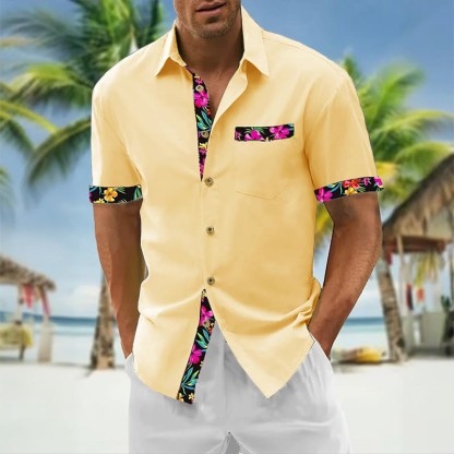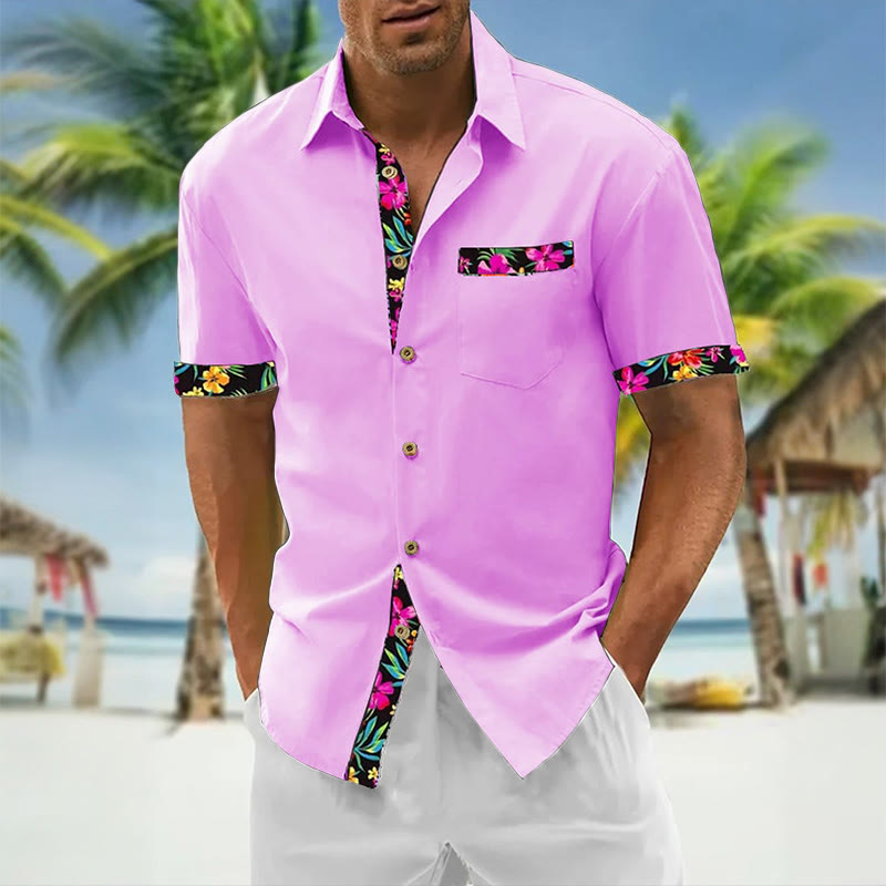 Men's Hawaiian Floral Contrast Print Casual Short Sleeve Shirt