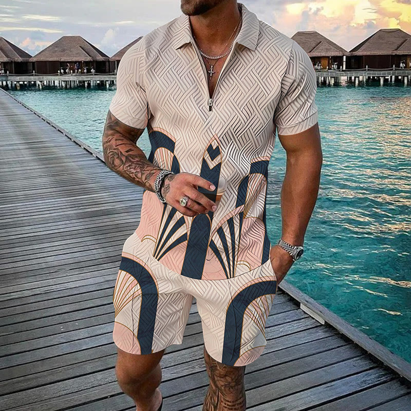 Men's Mystic Traveler Print Casual Short-sleeved Polo Set