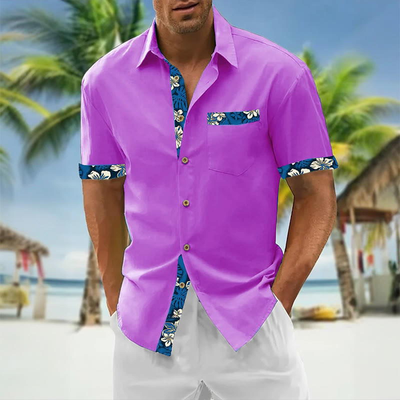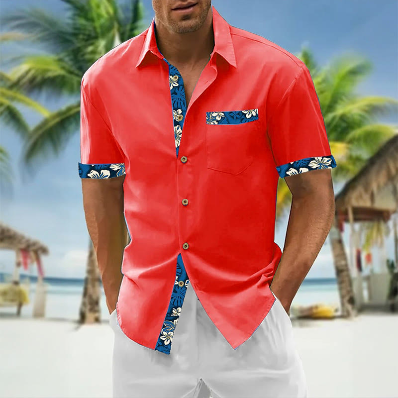 Men's Resort Style Contrast Print Casual Short Sleeve Shirt