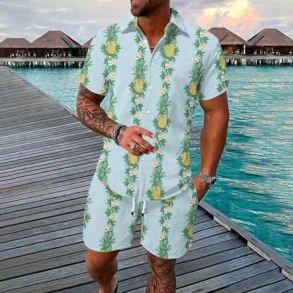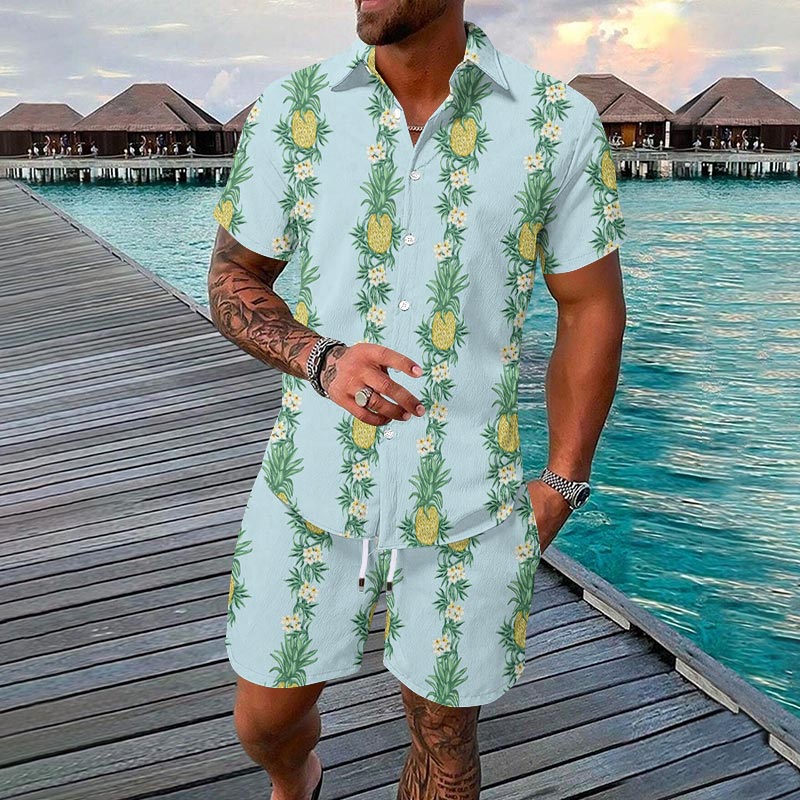 Men's Vacation Simple Pineapple Express Print Short-sleeve Hawaiian Shirt Set – lolonb