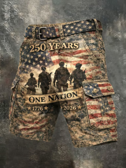 Men's 250th Anniversary 1776-2026 Flag Camo Art Print Denim-Like Casual Shorts