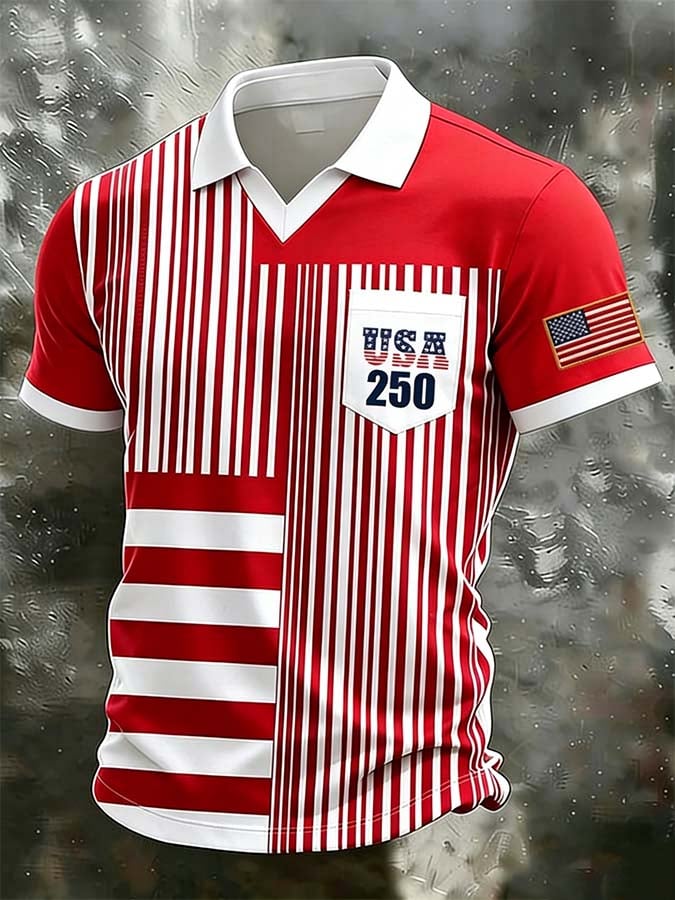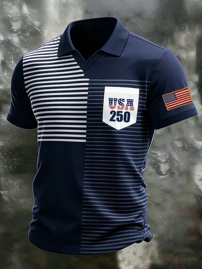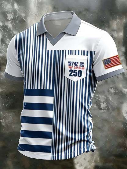 Men's 250th Anniversary Print Short-Sleeve Polo Shirt (Faux Pocket)
