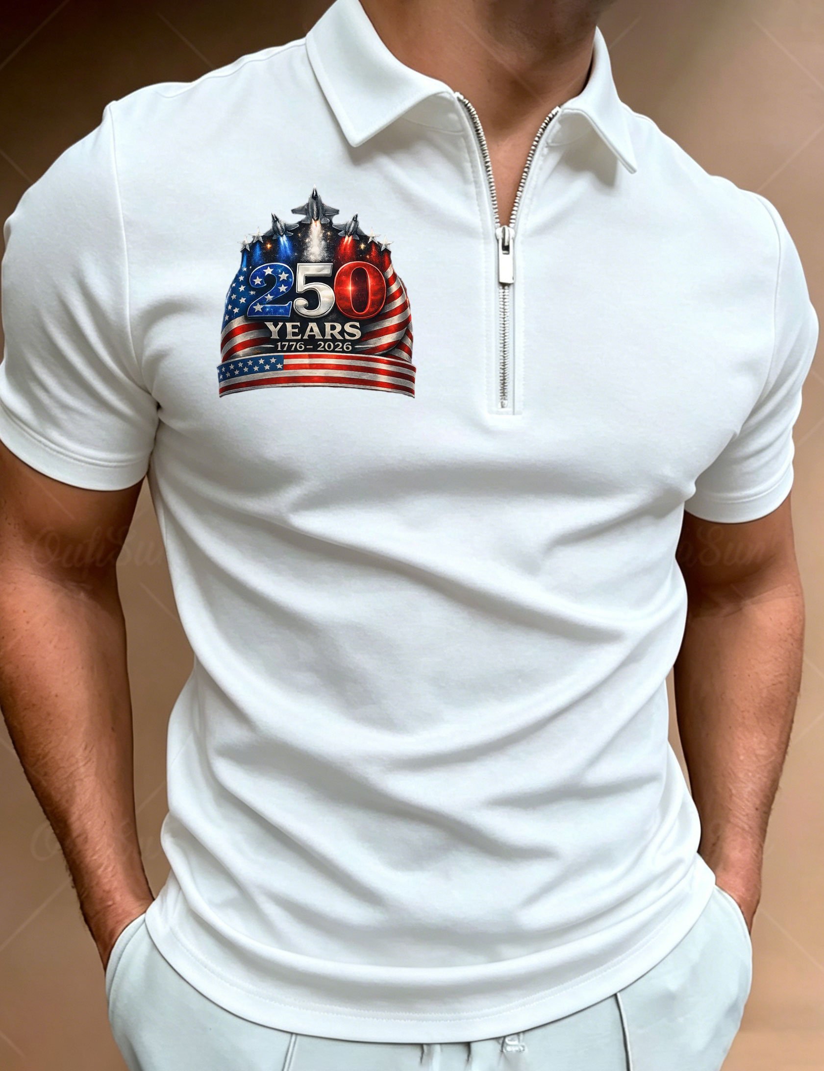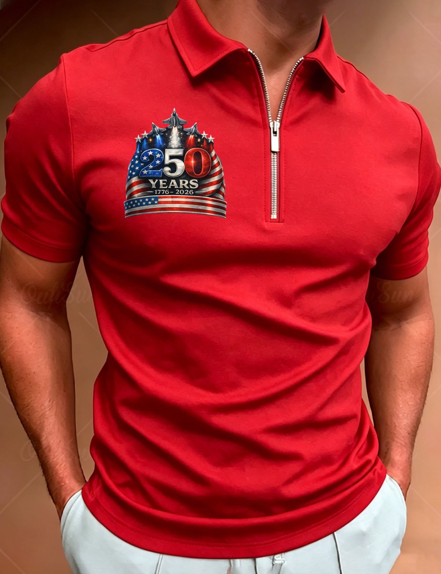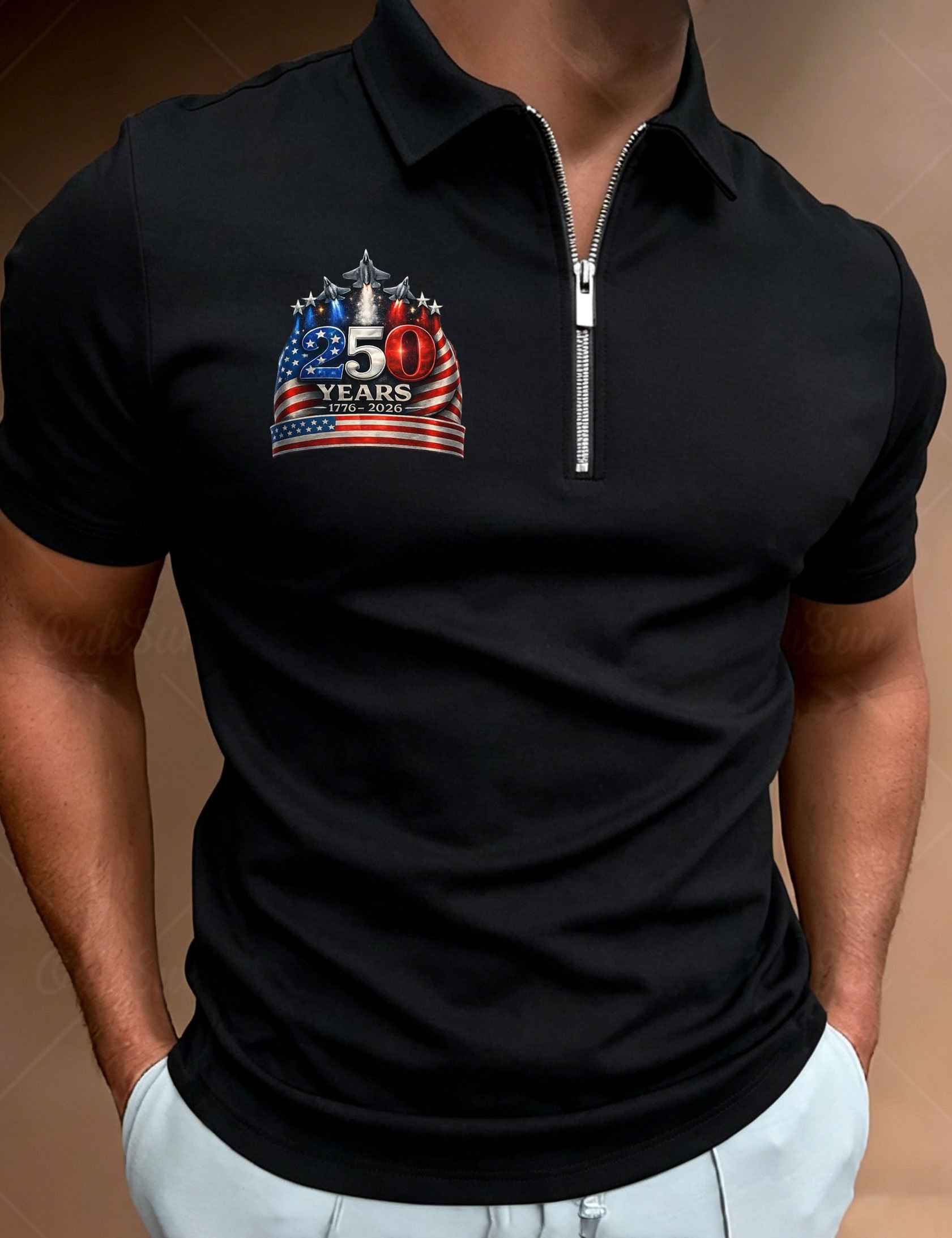 Men's American 250th Anniversary Print Zip-Up Polo Shirt