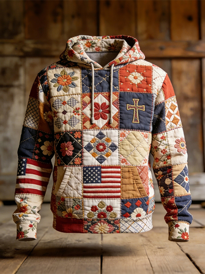 Men's American Flag Floral Colorblock Print Casual Hoodie