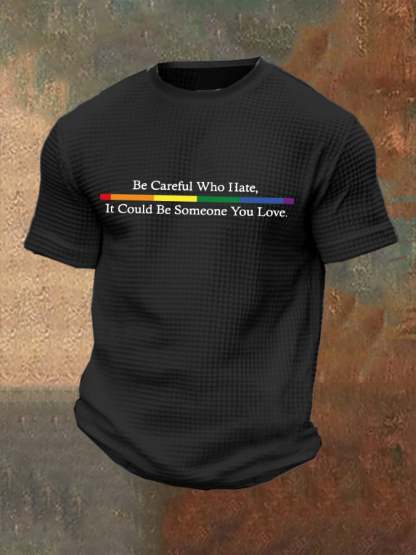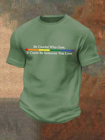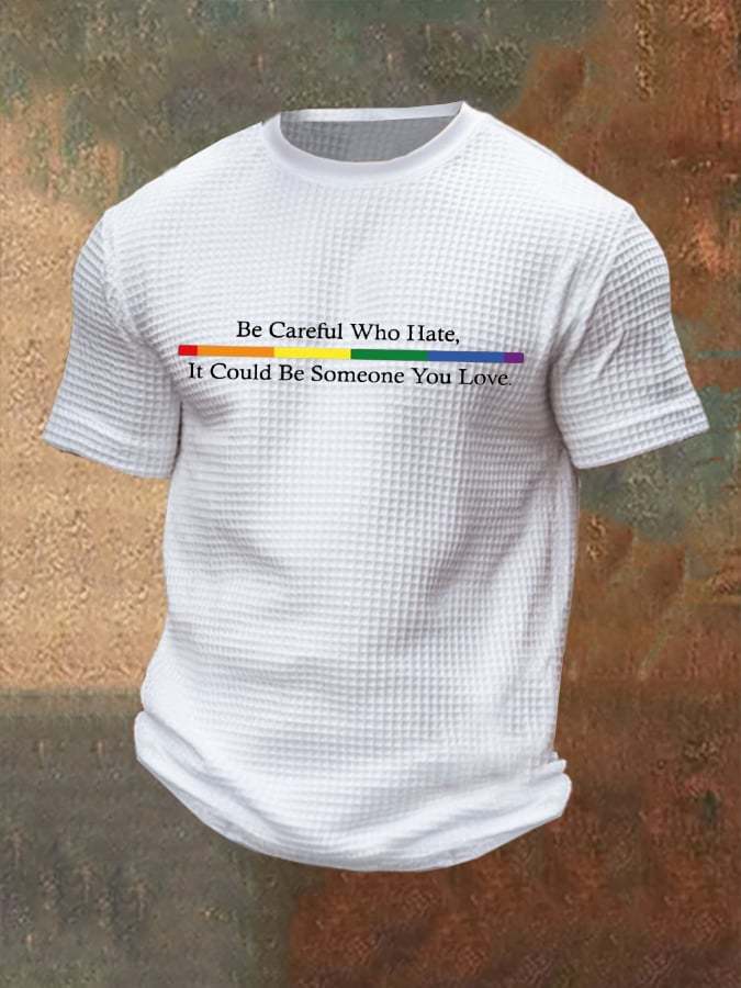 Men's Be Careful Who You Hate It Could Be Someone You Love Print Casual Waffle T-Shirt