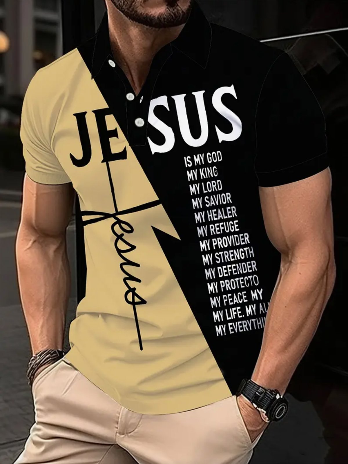 Men's Believe In Jesus My God Casual Round Neck Polo Shirt