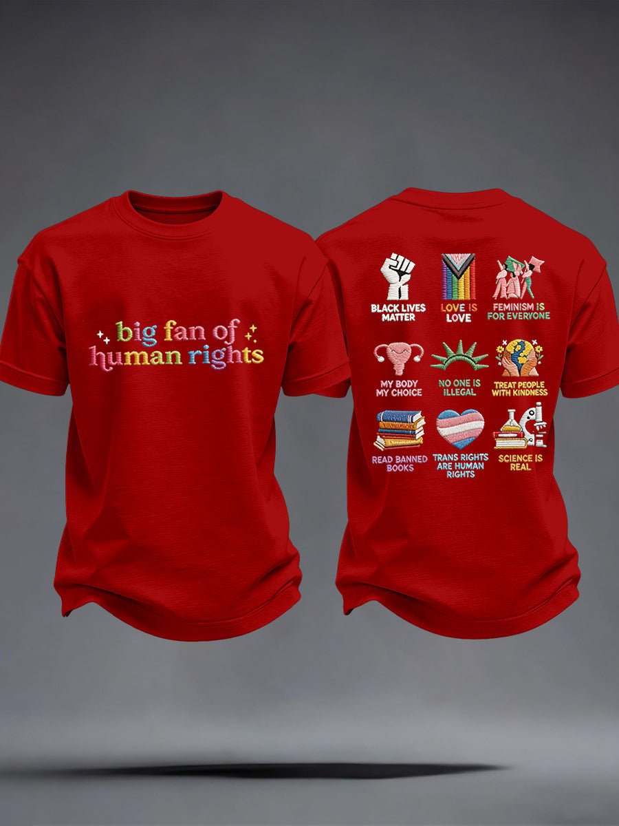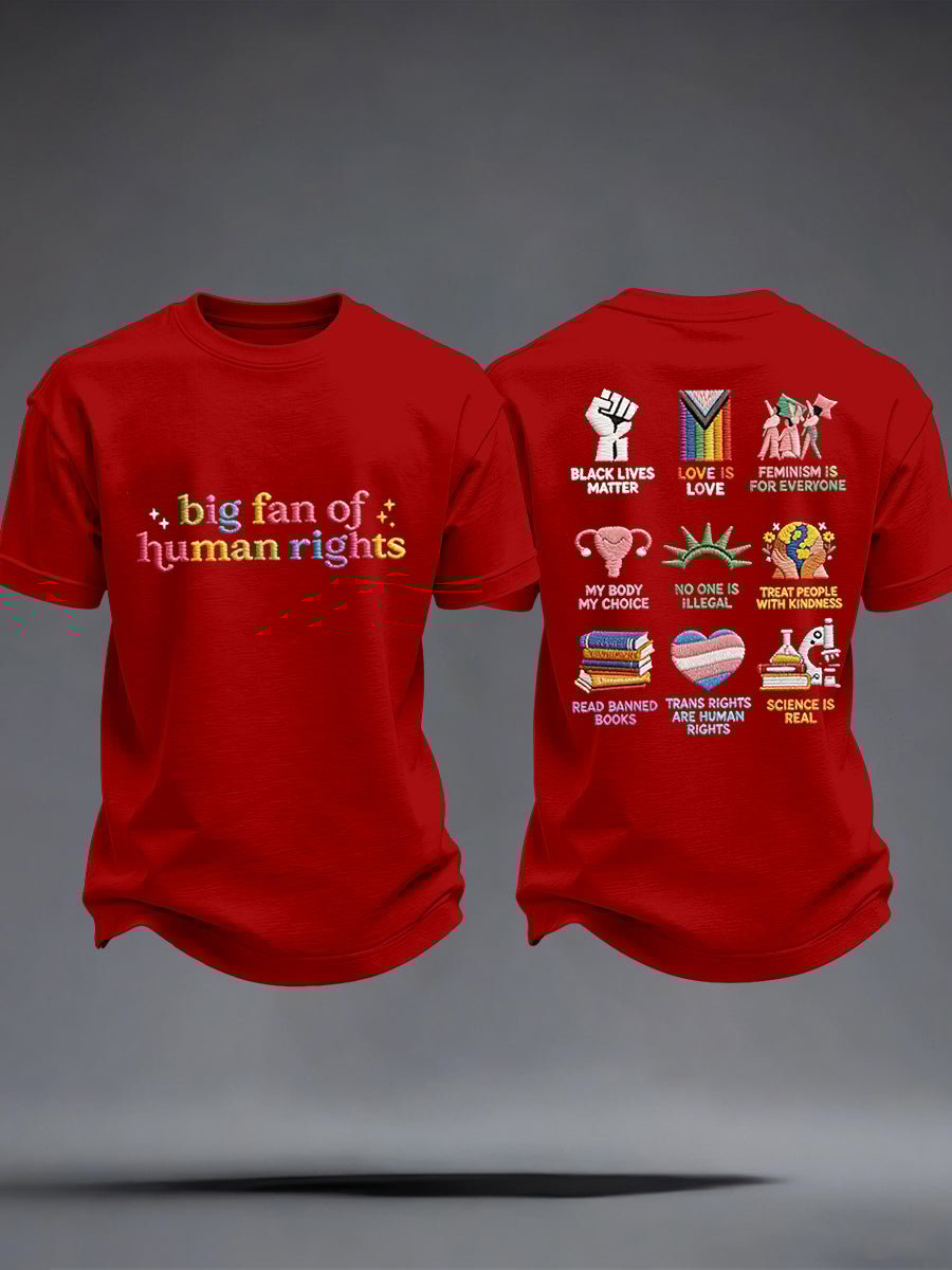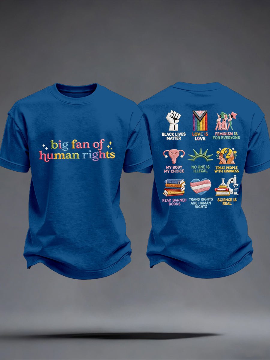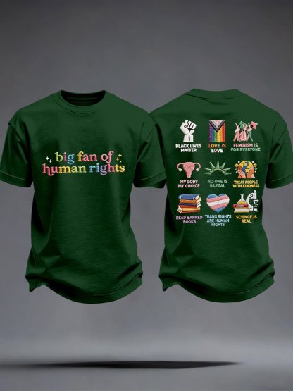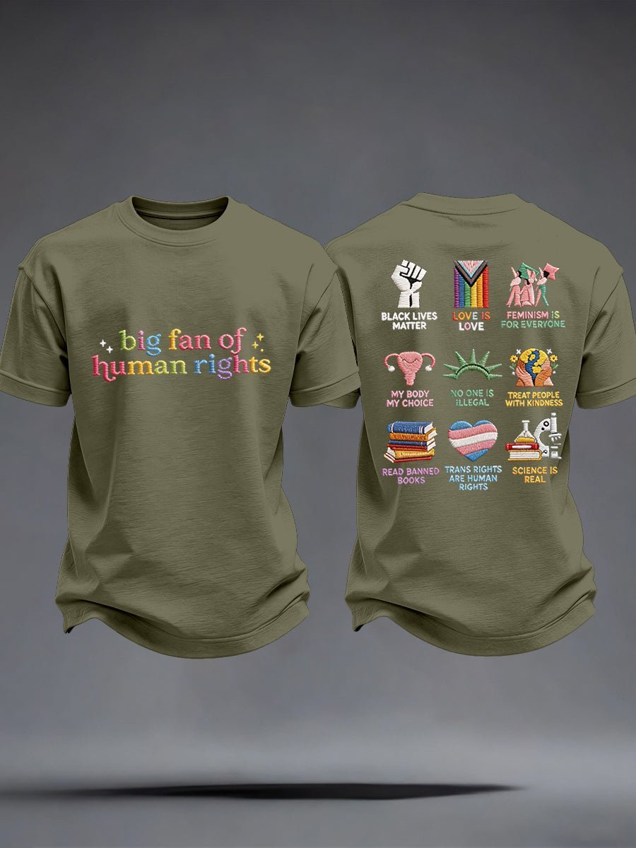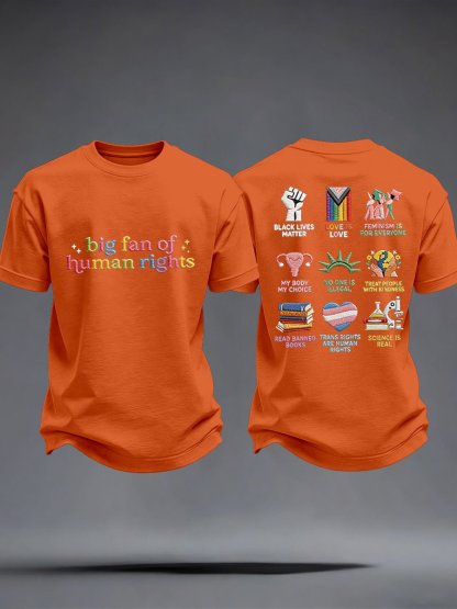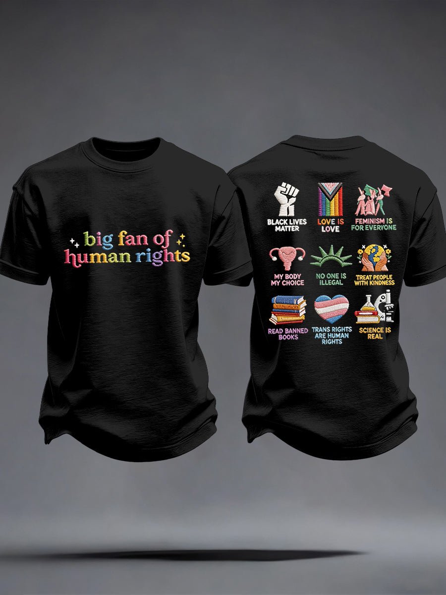 Men's Big Fan of Human Rights Print Casual T-Shirt