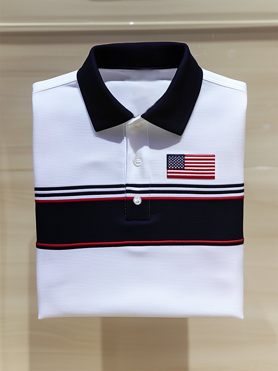 Men's Business Casual Striped Independence Day Button Short Sleeve Polo Shirt – lolonb
