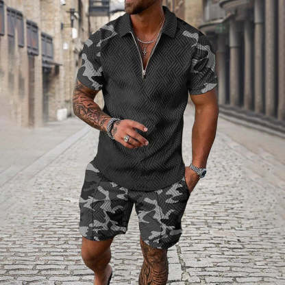 Camouflage Sleeve Polo Shirt And Shorts Co-Ord