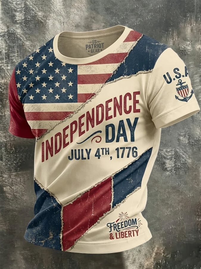 Men's Casual American 250th Anniversary Print Crew Neck Short Sleeve T-Shirt