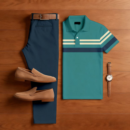 Men's Casual Color Matching Printed Polo-Collar Short Sleeved Trousers Two-Piece Set – lolonb