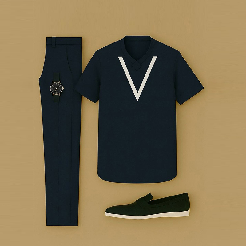 Men's Casual Color Matching Printed Short Sleeved V-Neck T-Shirt & Trousers Two-Piece Set