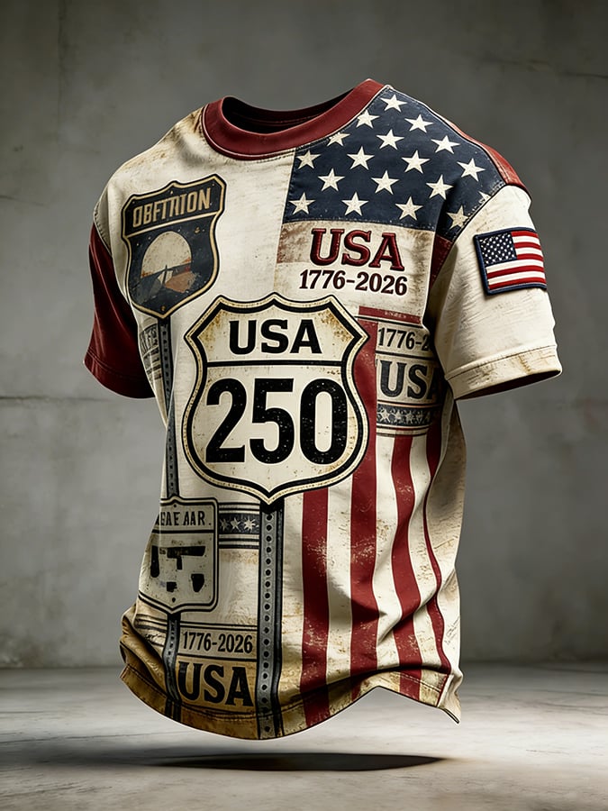 Men'S Casual Crew Neck Short-Sleeve T-Shirt With Usa 250th Anniversary Print