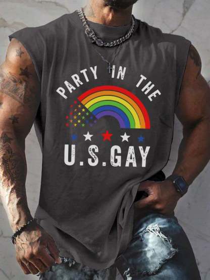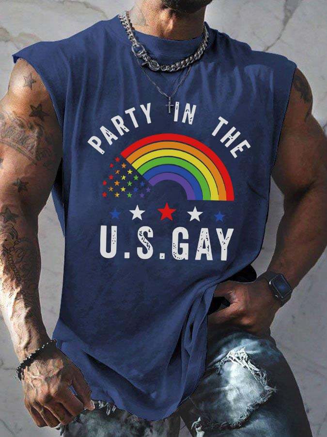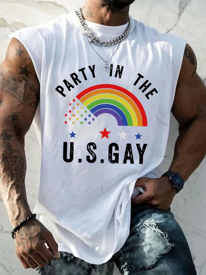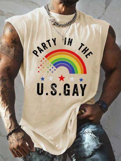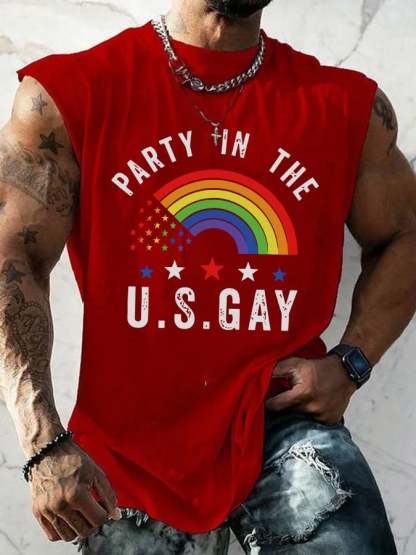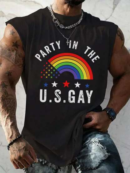 Men's Casual Gay Pride Month Rainbow Graphic Print Crew Neck Tank Top