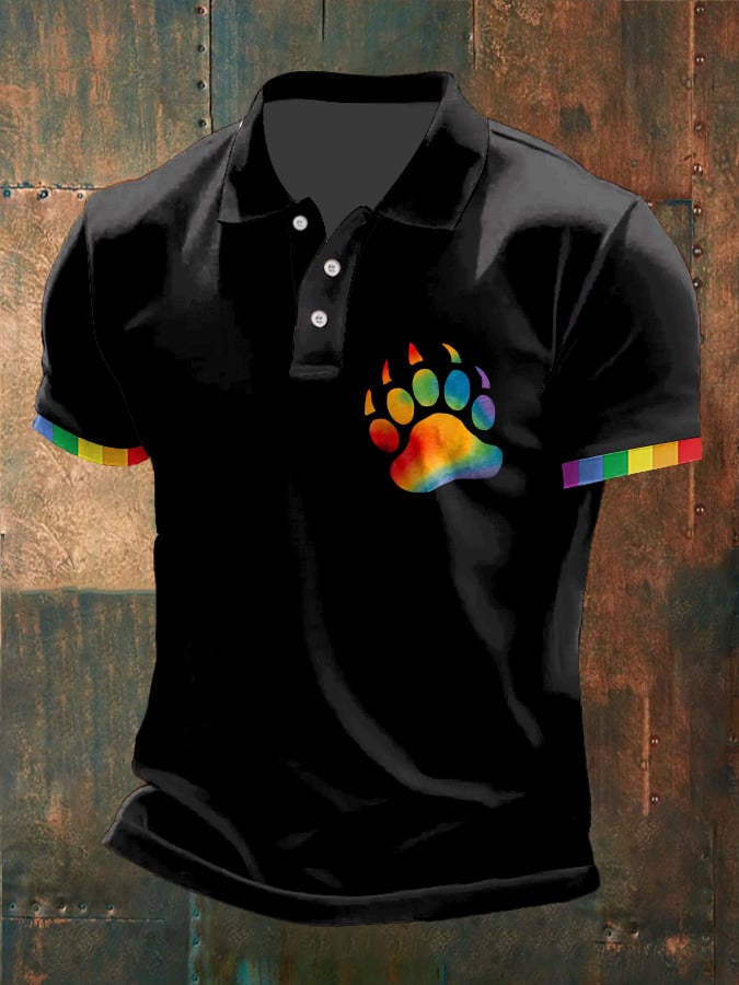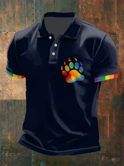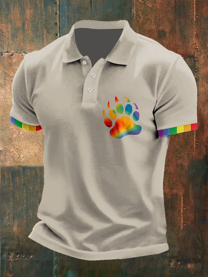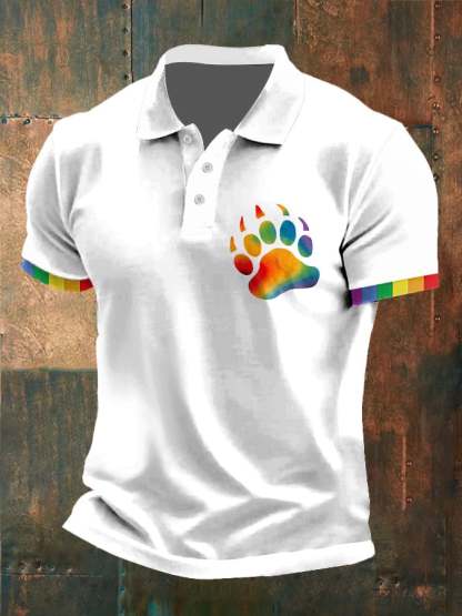 Mens Casual Gay Rainbow Paw Pride Print POLO Shirt