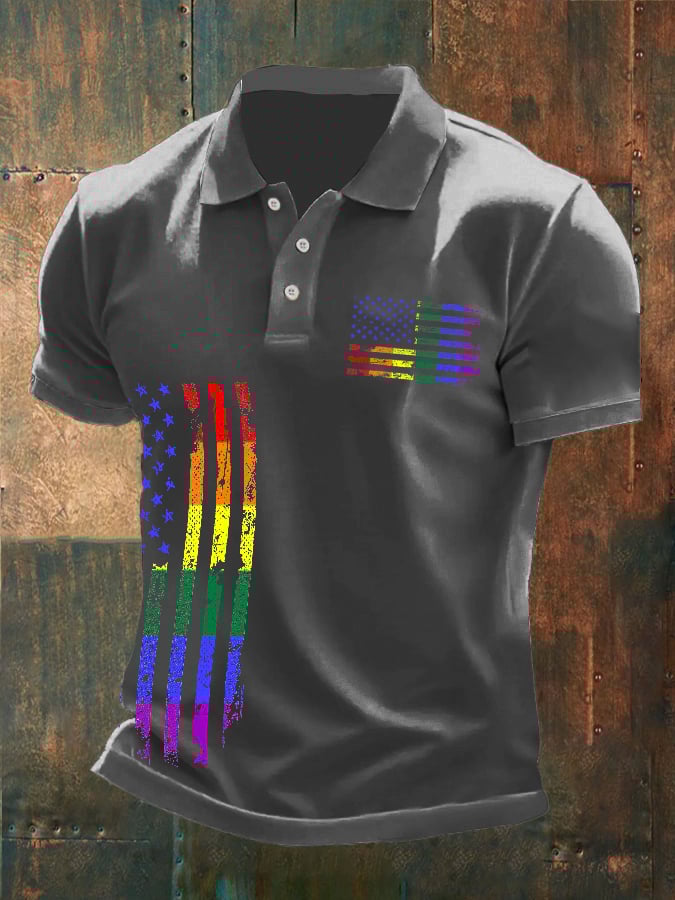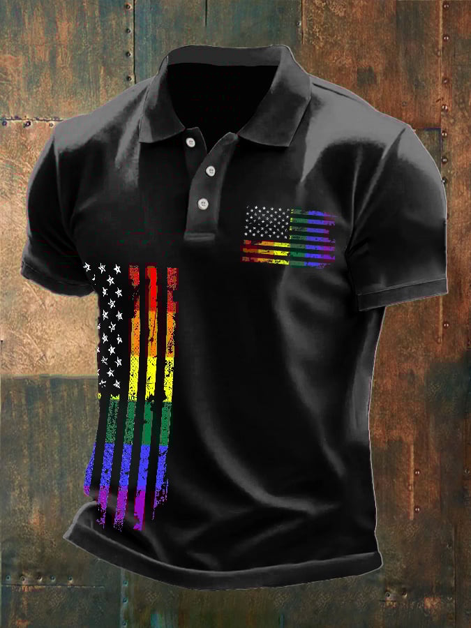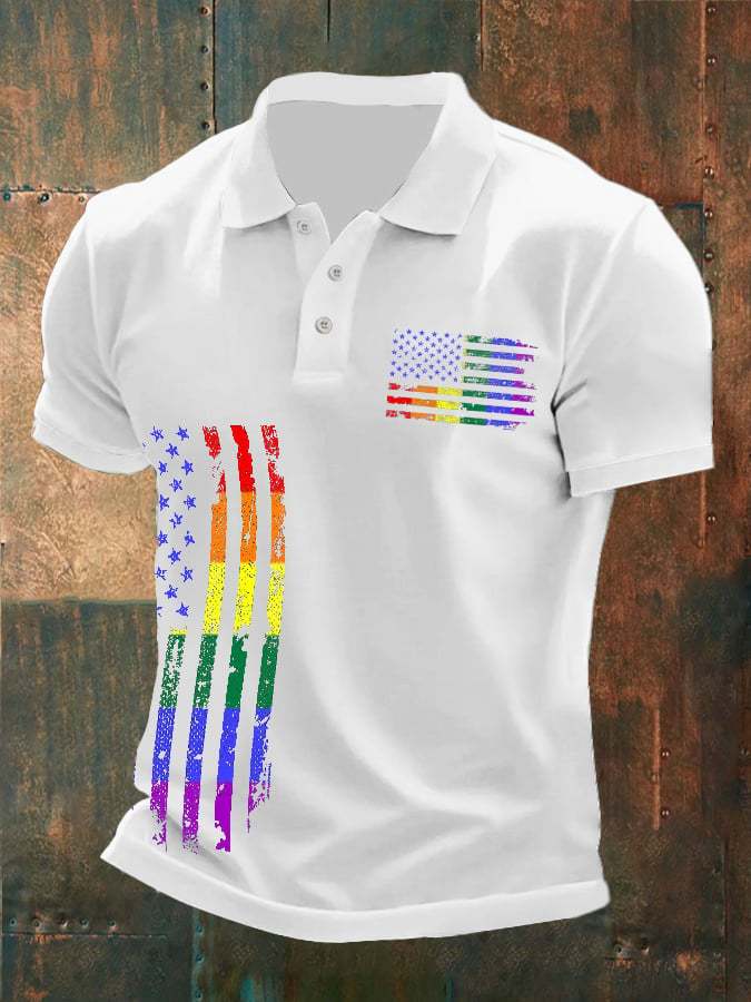 Mens Casual LGBT Pride Month Flag Print POLO Shirt