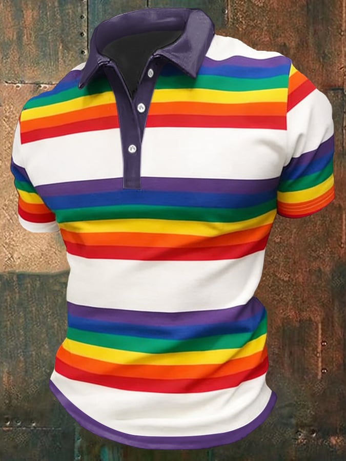 Men'S Casual Pride Month Print Polo Shirt