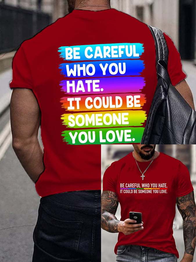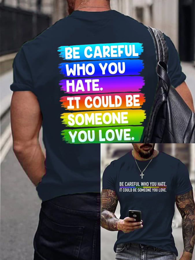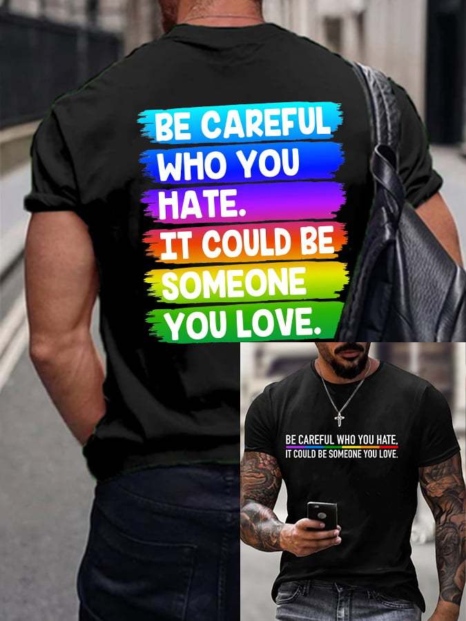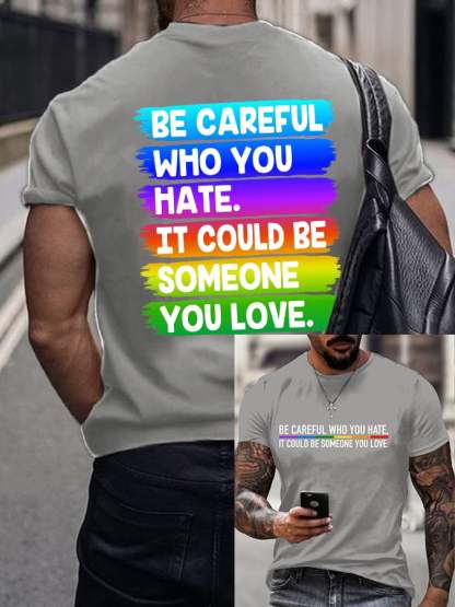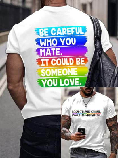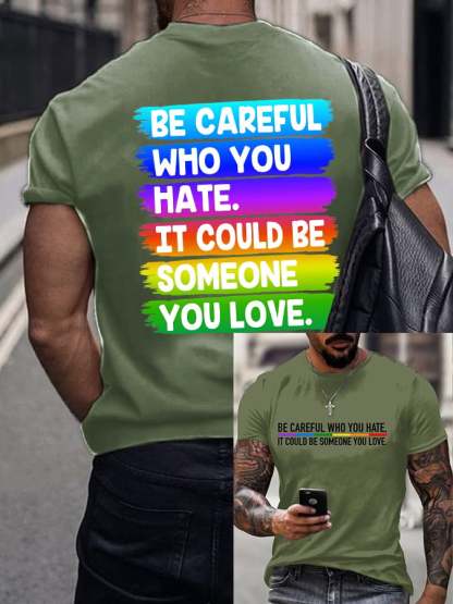 Men's Casual Rainbow Be Careful Who You Hate, It Could Be Someone You Love Printed T-shirt