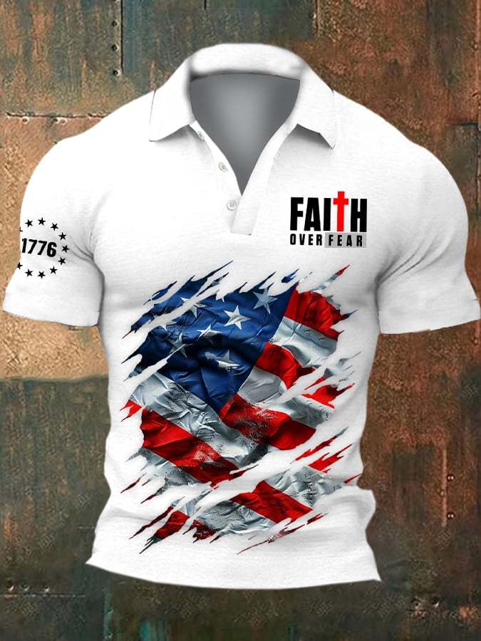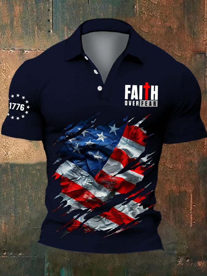 Men's casual retro Independence Day polo