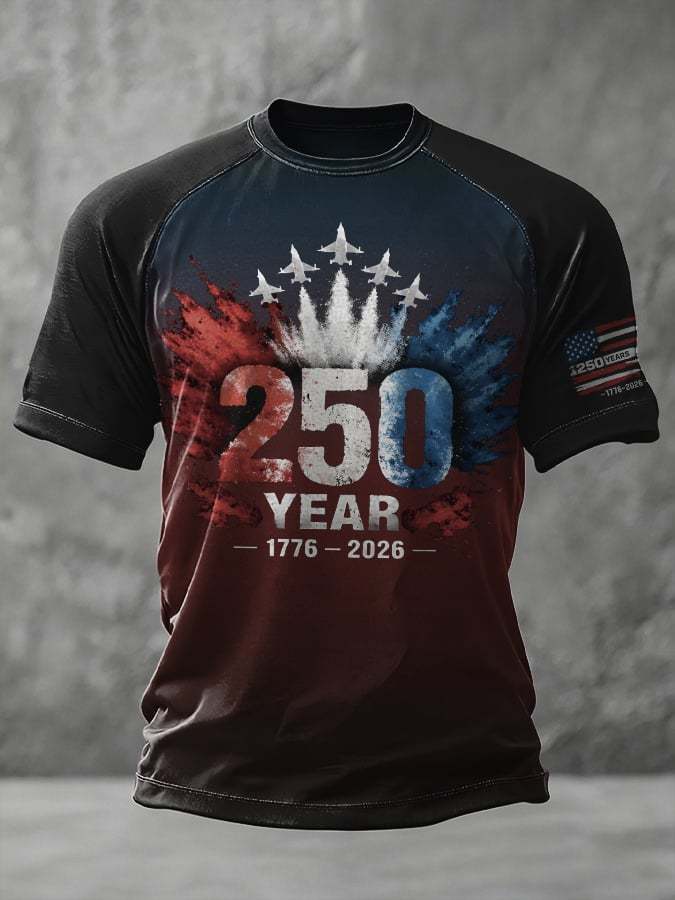 Men'S Casual Short-Sleeved Crew Neck T-Shirt With American 250th Anniversary Commemorative Print.