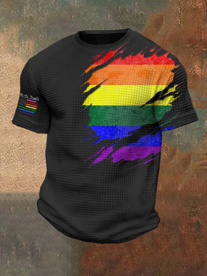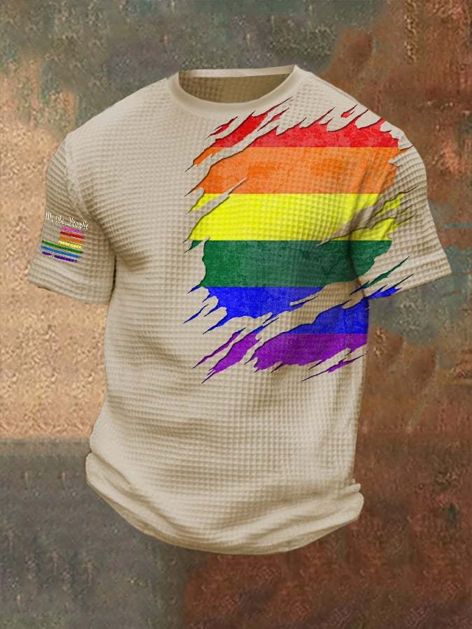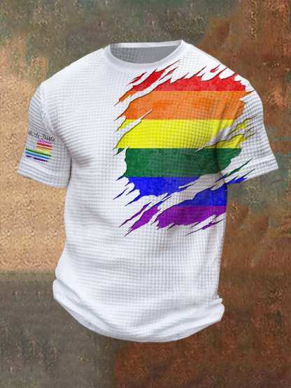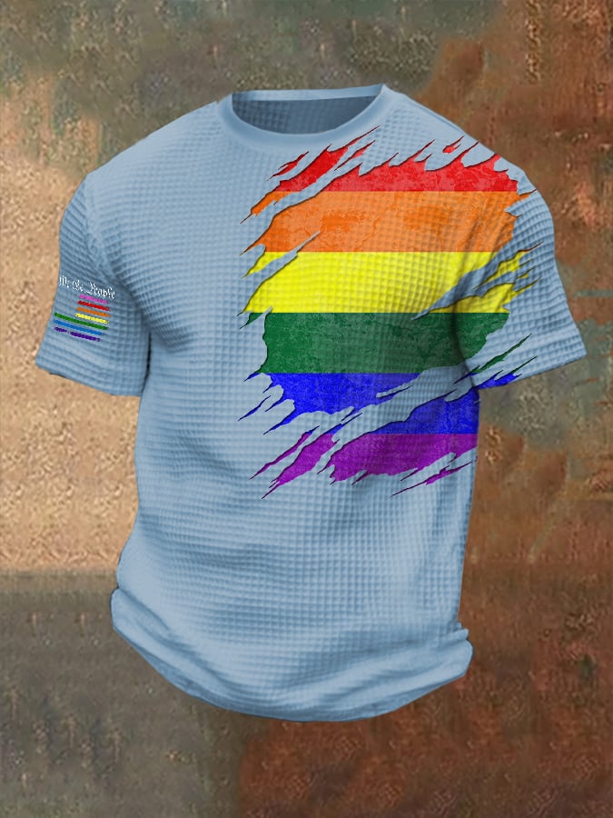 Men's Casual Try Rainbow Stripe Waffle T-Shirt