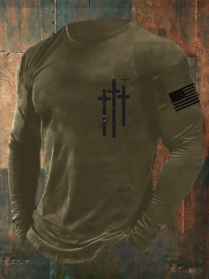 Men's Christian Cross Print Long Sleeve Top