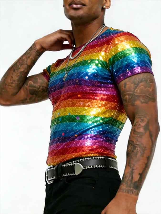 Men's Crew Neck Slim-Fit Pride Month Rainbow Print T-Shirt – lolonb