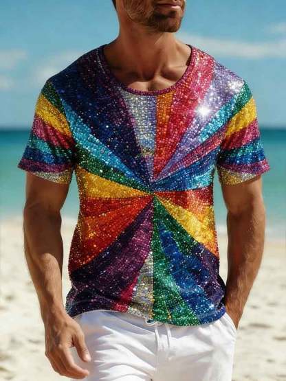 Men's Crew Neck Slim-Fit Pride Month Rainbow Print T-Shirt