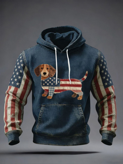 Men's Dachshund American Flag Print Casual Hoodie