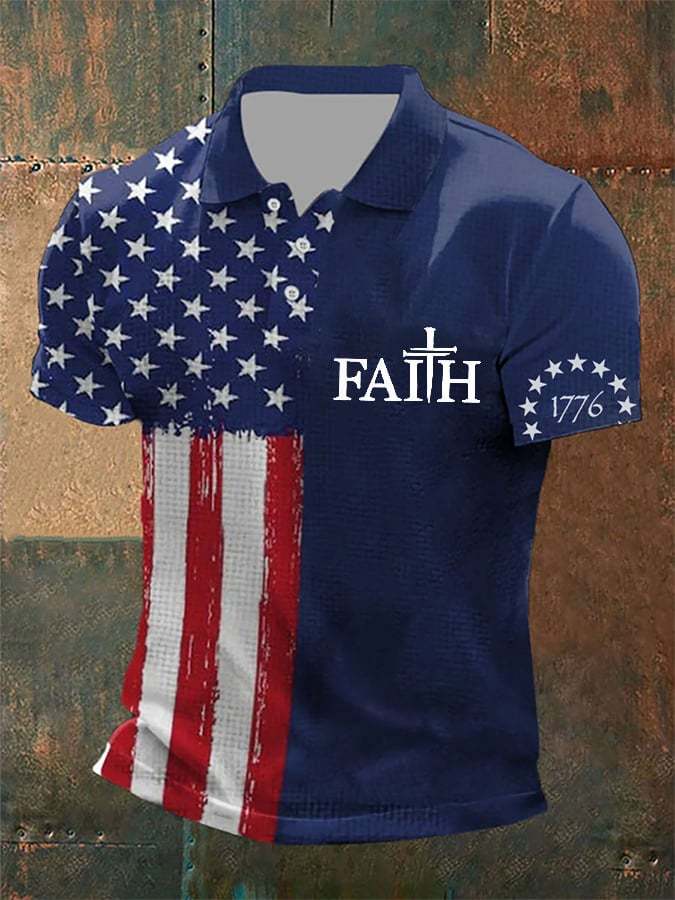 Men's Faith Cross America Flag Printed Short Sleeve POLO T-shirt