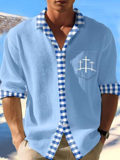Men's Faith Cross Print Waffle Shirt (With Pockets)