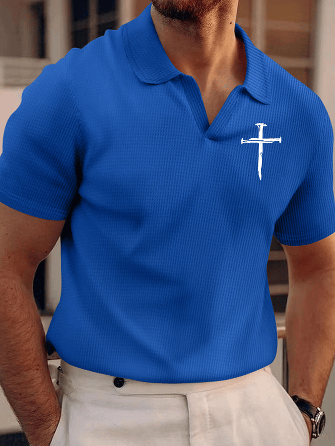 Men's Faith Cross Printed Textured Fabric Comfortable Casual POLO Shirt