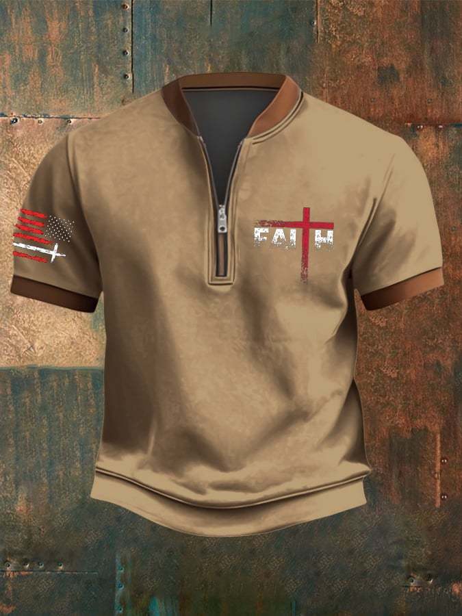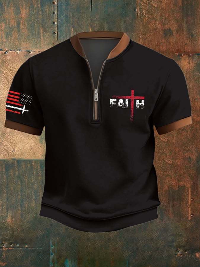 Men's Faith Over Fear Flag Print Zip-Up Top