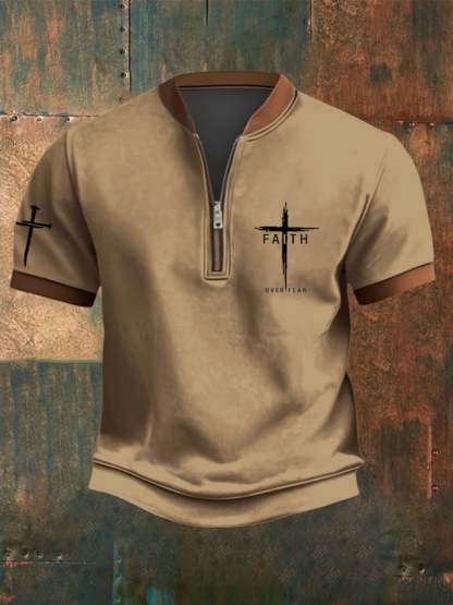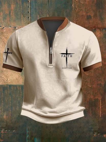 Men's Faith Over Fear Flag Print Zip-Up Top