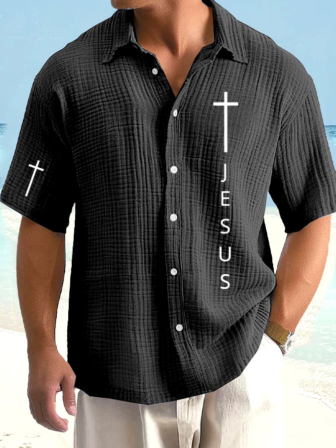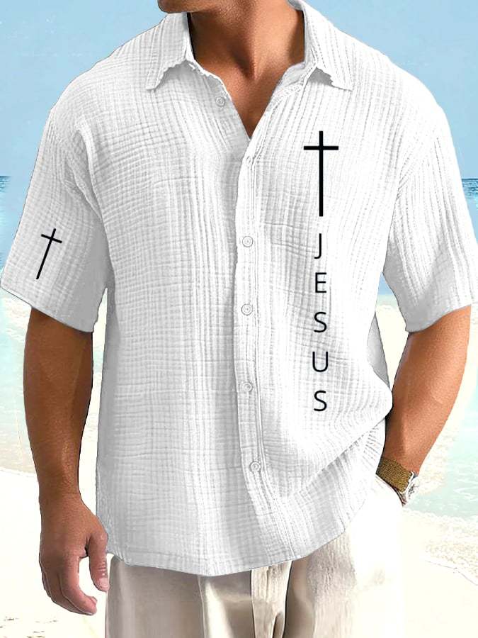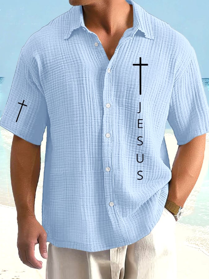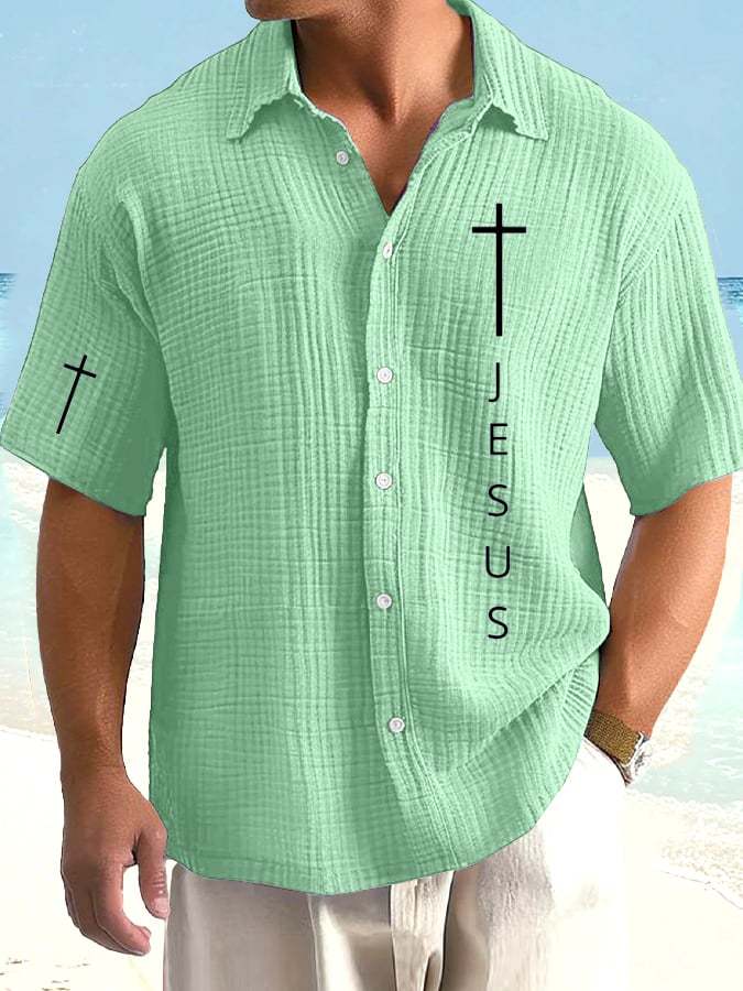 Men's Faith Print Bubble Wrinkle Vacation Shirt