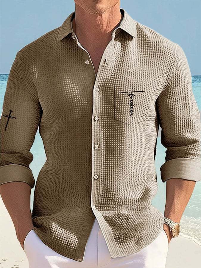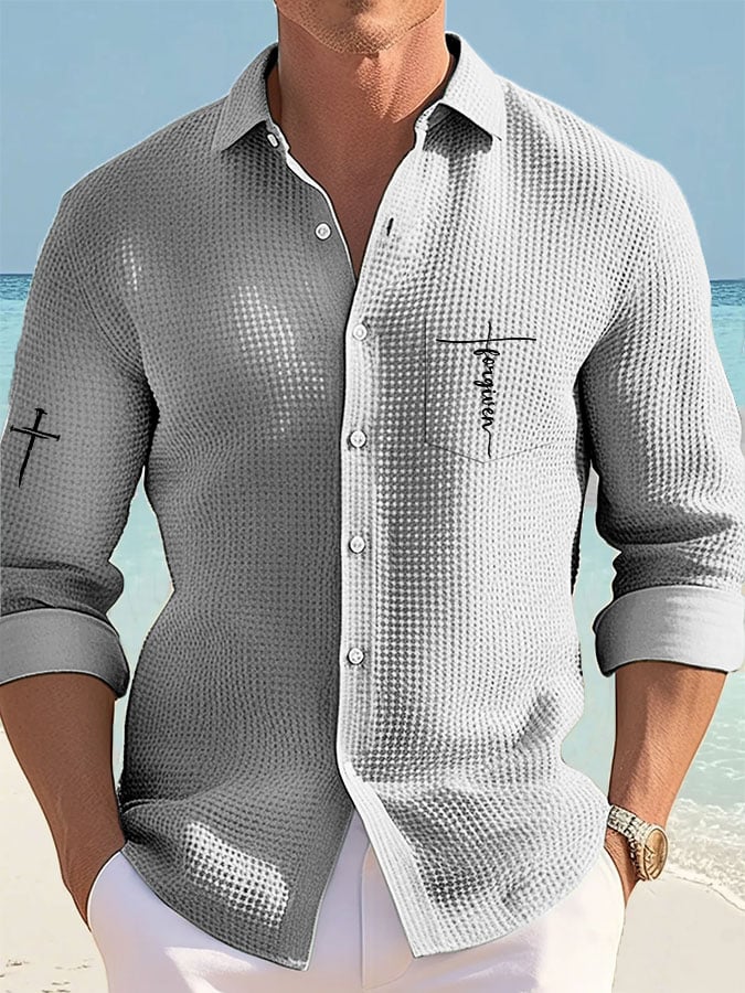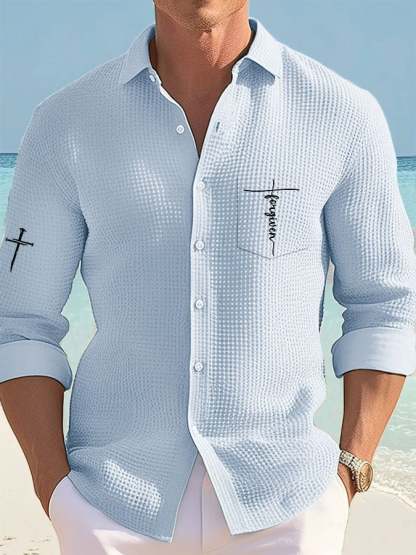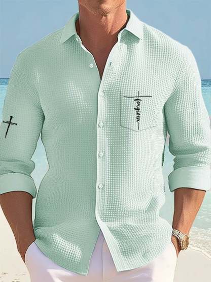 Men's Faith Print Resort Casual Waffle Shirt (With Pockets)