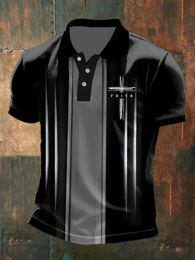 Men's Faith Printed Button Design Polo Shirt