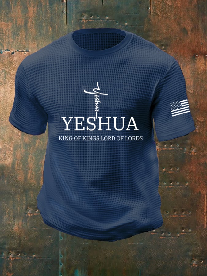 Men's Faith “Yeshua King Of Kings Lord Of Lords” Waffle Print T-shirt