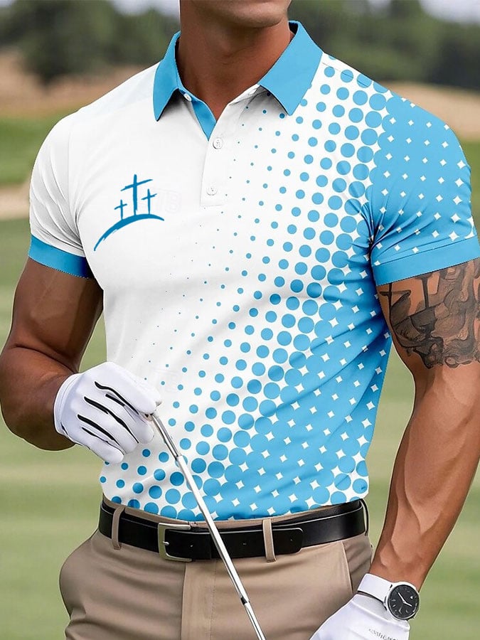 Men's fashion faith cross gradient POLO shirt