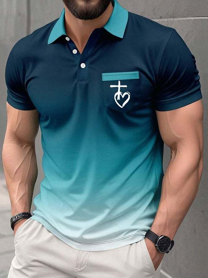 Men's Fashion Faith Love Cross Printed Casual Pocket POLO Shirt