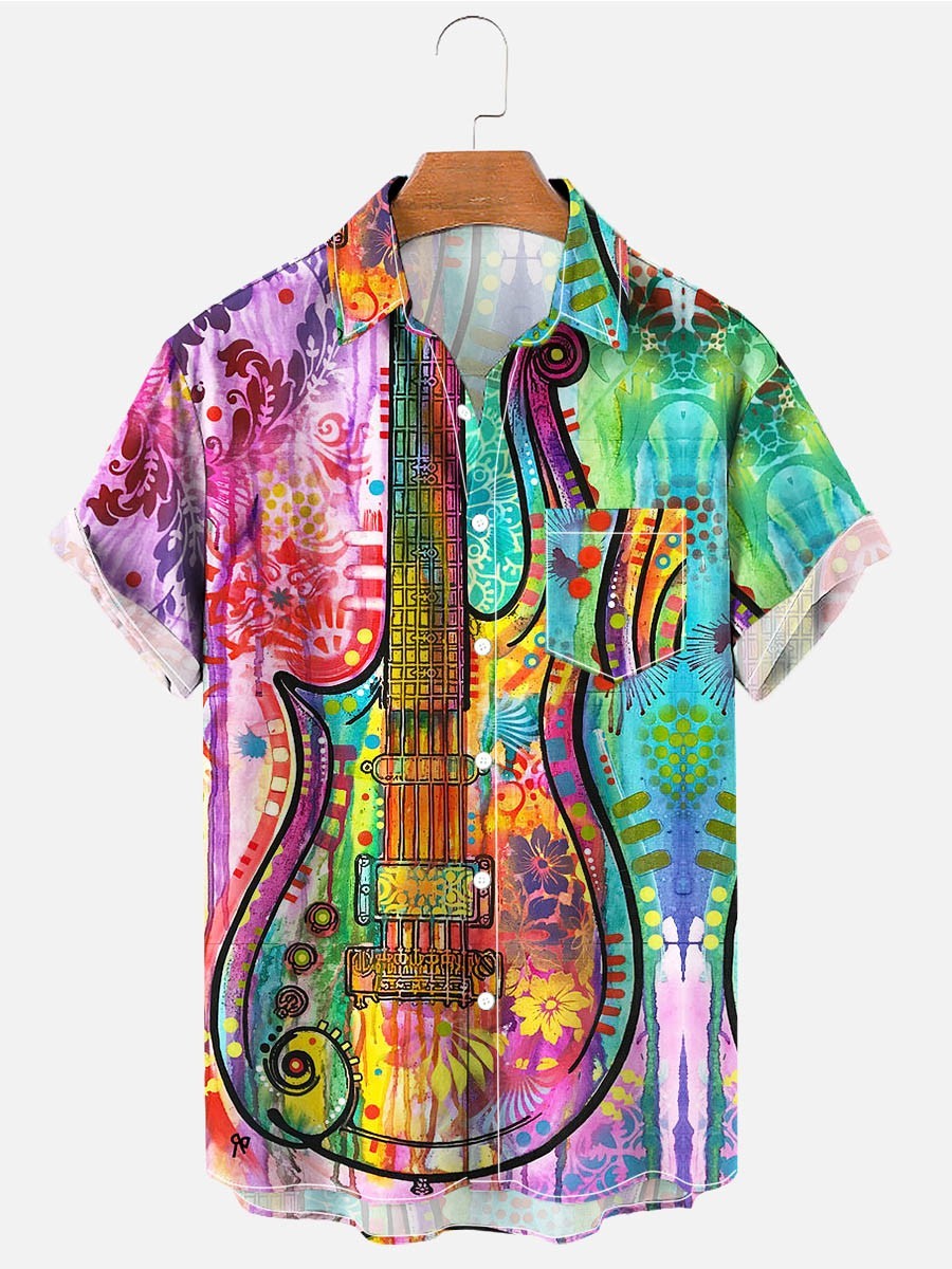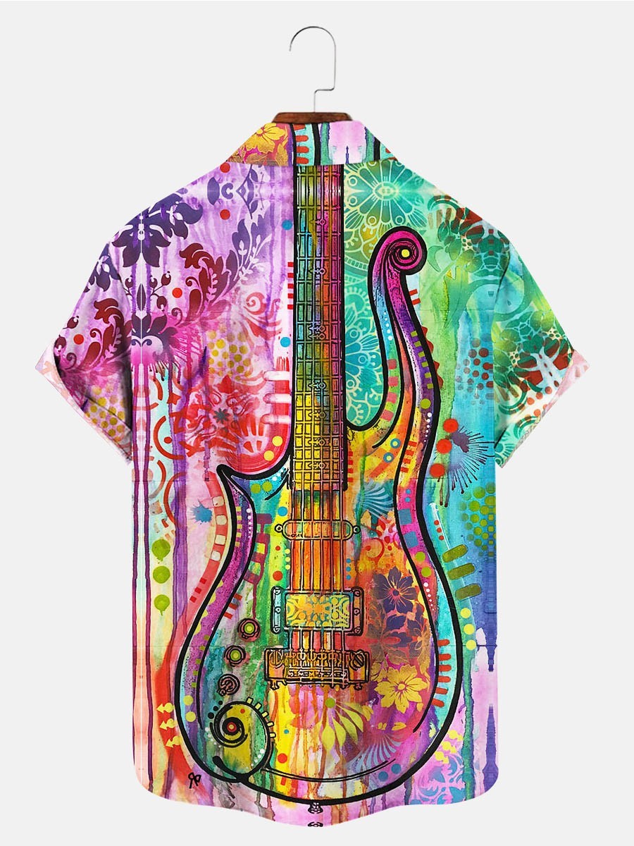 Men's Fashion Hippie Guitar Printed Casual Shirt