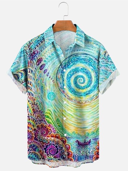 Men's Fashion Hippie Psychedelic DJ Printed Casual Shirt