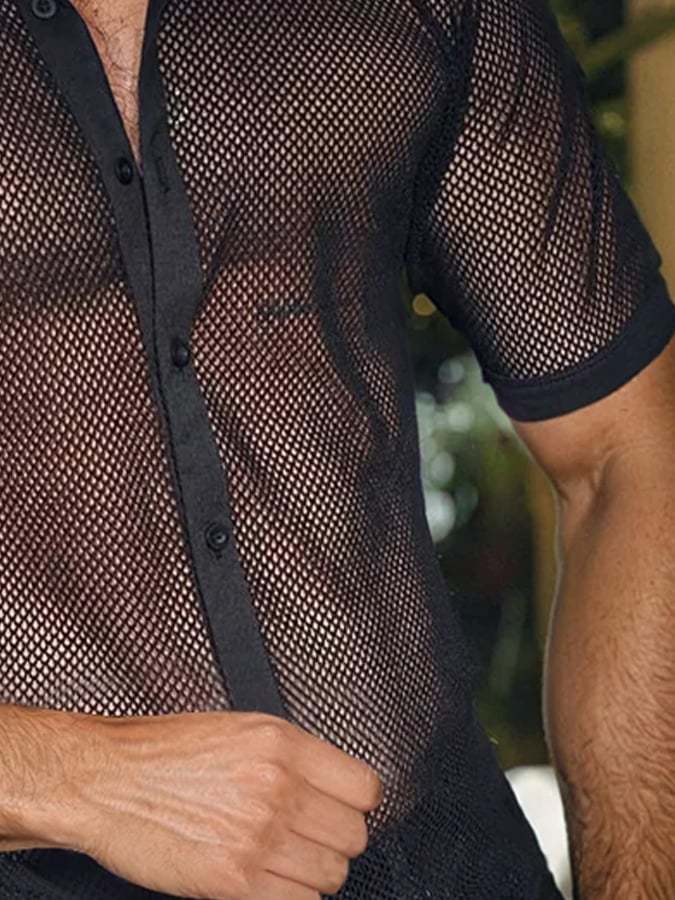 Men's Fashionable Casual Breathable Mesh See-Through Long-Sleeved Shirt