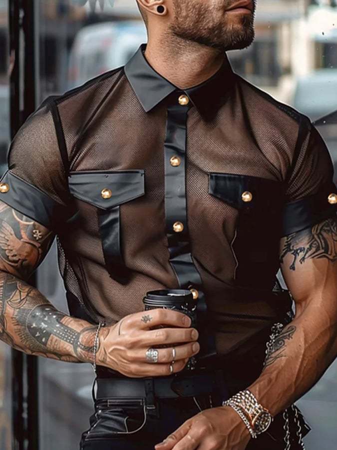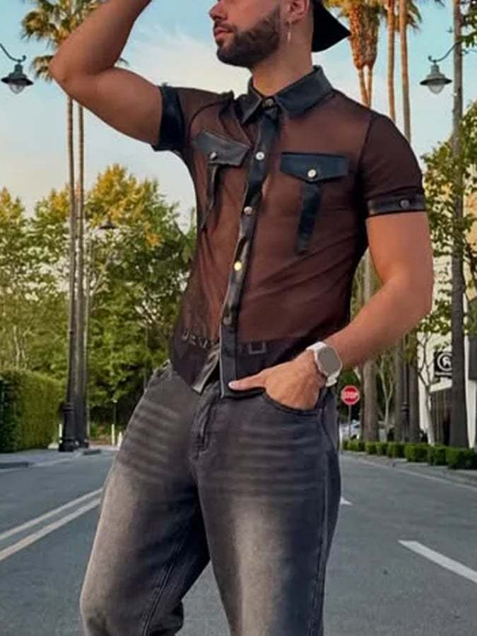 Men's Fashionable Casual Breathable Mesh See-Through Long-Sleeved Shirt