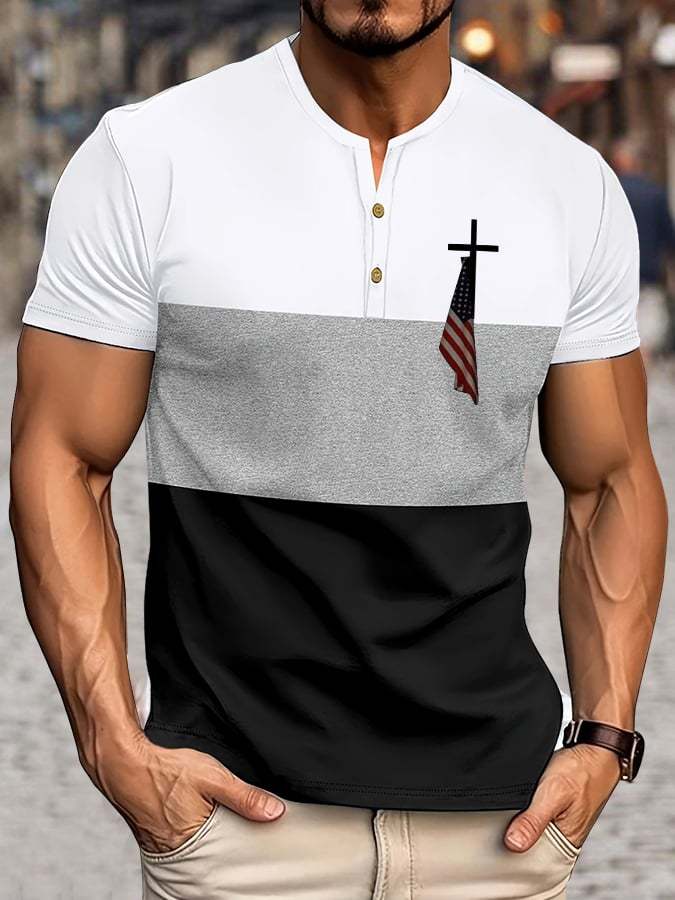 Men's Flag Cross Print Henley Top