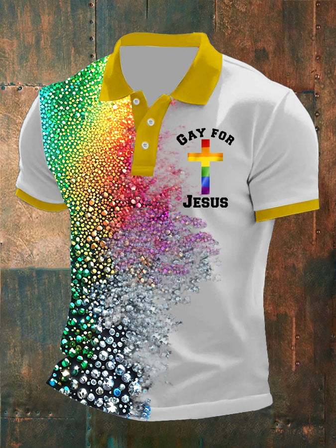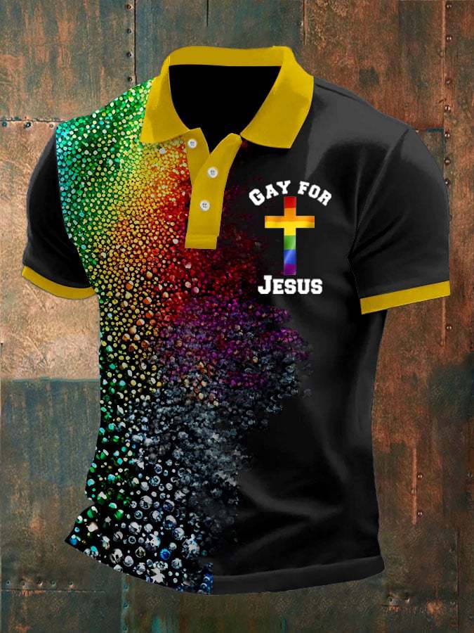 Men'S Gay For Jesus Cross Print Polo Shirt