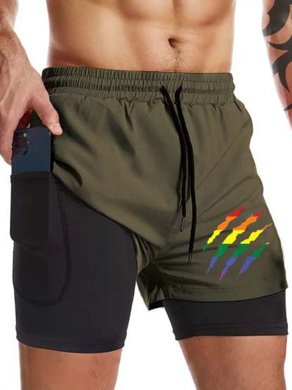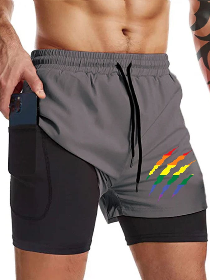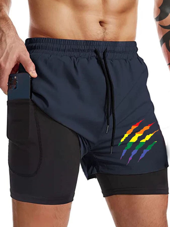 Men's Gay Pride Print Double Layer Shorts (With Pockets)