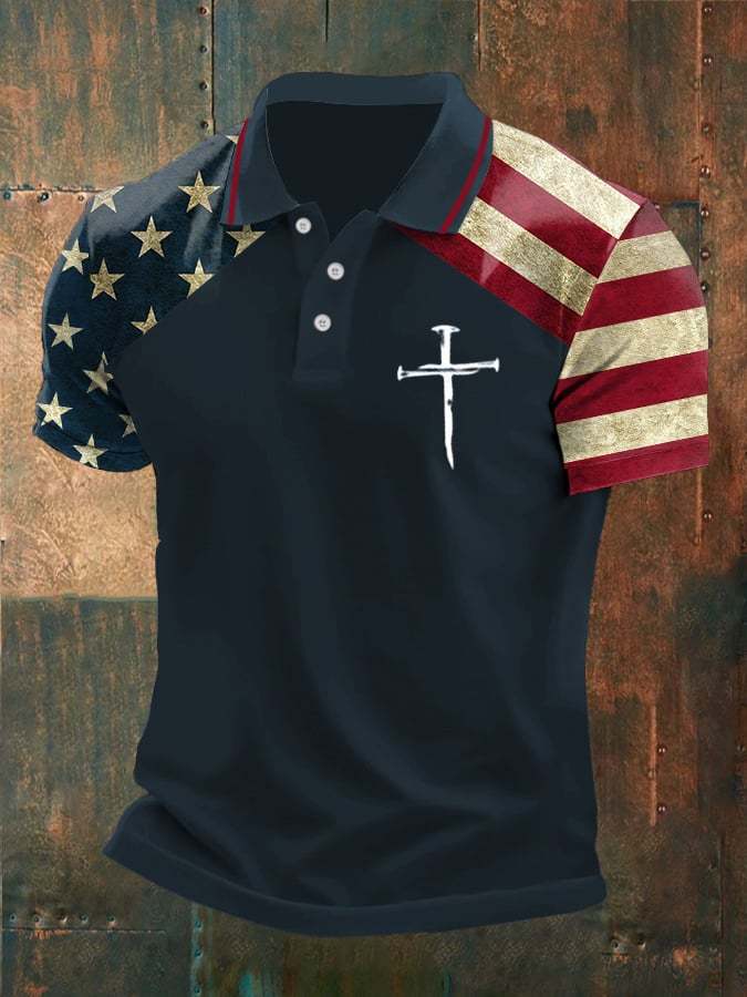 Men's Independence Day American Flag 1776 Print Casual Polo