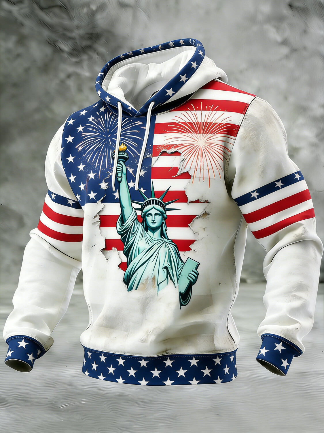 Men's Independence Day American Flag Statue Of Liberty Art Print Hoodie