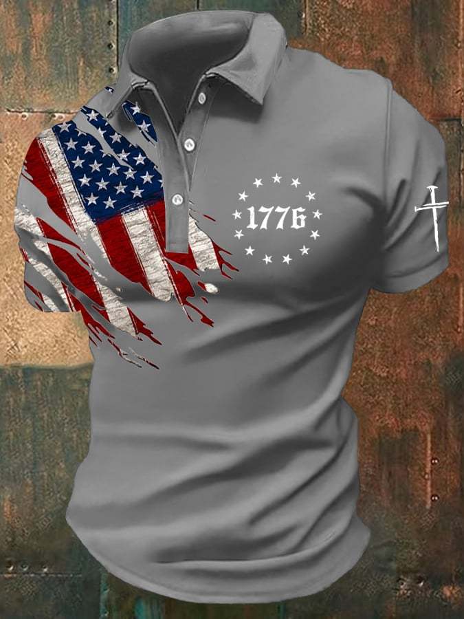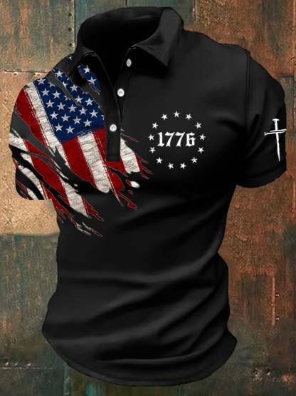 Men's Independence Day Faith Cross Printed Casual POLO Shirt